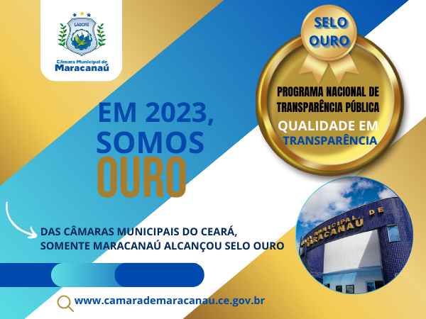 A Câmara Municipal de Maracanaú acaba de conquistar o "Selo Ouro" no Índice de Transparência do Programa Nacional de Transparência Pública, da Associação dos Membros dos Tribunais de Contas do Brasil (ATRICON). Em todo o Ceará, no comparativo com as Câmaras Legislativas, apenas a Câmara de Maracanaú alcançou este patamar em seu primeiro ano de avaliação, obtendo 88,33% no nível de transparência geral e 100% dos critérios essenciais. A avaliação é feita a partir de consultas nos portais oficiais dos Municípios e das Câmaras.